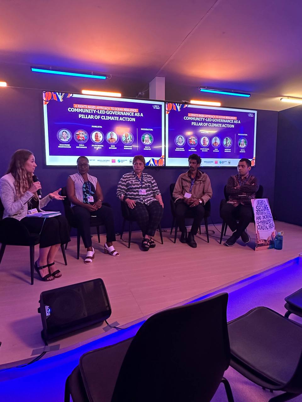 La dirigenta de la pesca artesanal chilena, estuvo acompañado por sus pares Julia Pembe, presidenta de la Red de mujeres criadoras y procesadoras de productos pesqueros en la República del Congo, en África; Dani Setiawan, presidente de la Asociación de Pescadores Tradicionales de Indonesia (KNTI), de Asia y Sebastiao Rodrigues, activista e investigador ambiental radicado en Goa, en Asia.